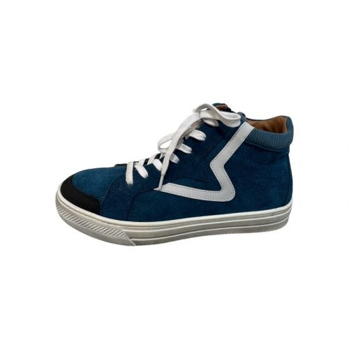 La basket Montante Fr Romagnoli - Cuir Velours Bleu Océan : Adoptez un style audacieux avec cette basket montante en cuir velours. Le confort est maximal grâce à la semelle épaisse et le côté pratique est assuré par la fermeture éclair latérale en plus des lacets. Le détail latéral blanc en forme de "V" apporte une touche graphique moderne. Élégance et praticité pour toutes vos aventures urbaines.
