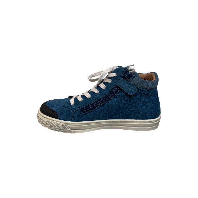La basket Montante Fr Romagnoli – Cuir Velours Bleu Océan : Adoptez un style audacieux avec cette basket montante en cuir velours. Le confort est maximal grâce à la semelle épaisse et le côté pratique est assuré par la fermeture éclair latérale en plus des lacets. Le détail latéral blanc en forme de « V » apporte une touche graphique moderne. Élégance et praticité pour toutes vos aventures urbaines.