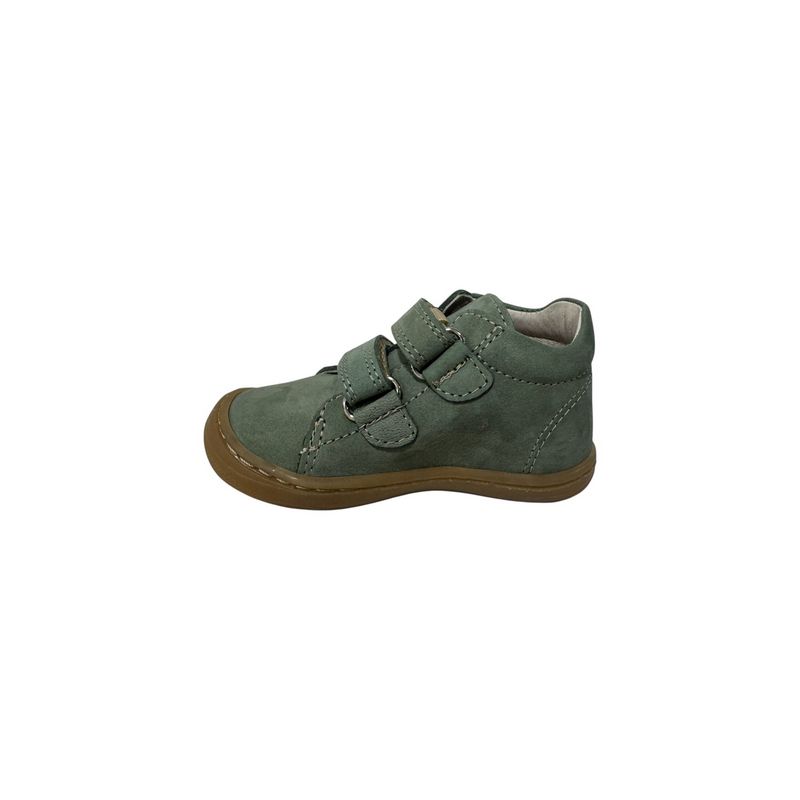 Cette chaussure Bellamy Loulou en version vert sage est un modèle pratique et robuste, idéal pour les enfants qui gagnent en autonomie. Conçue en cuir nubuck tout doux, elle se ferme en un clin d’œil grâce à ses deux bandes auto-agrippantes, permettant un ajustement facile et rapide. Sa forme montante assure un excellent maintien de la cheville, tandis que sa semelle en gomme marron offre la souplesse et l’adhérence nécessaires aux premiers pas. Avec son design épuré et son coloris naturel, c’est un basique confortable qui allie parfaitement qualité de fabrication française et simplicité d’utilisation.